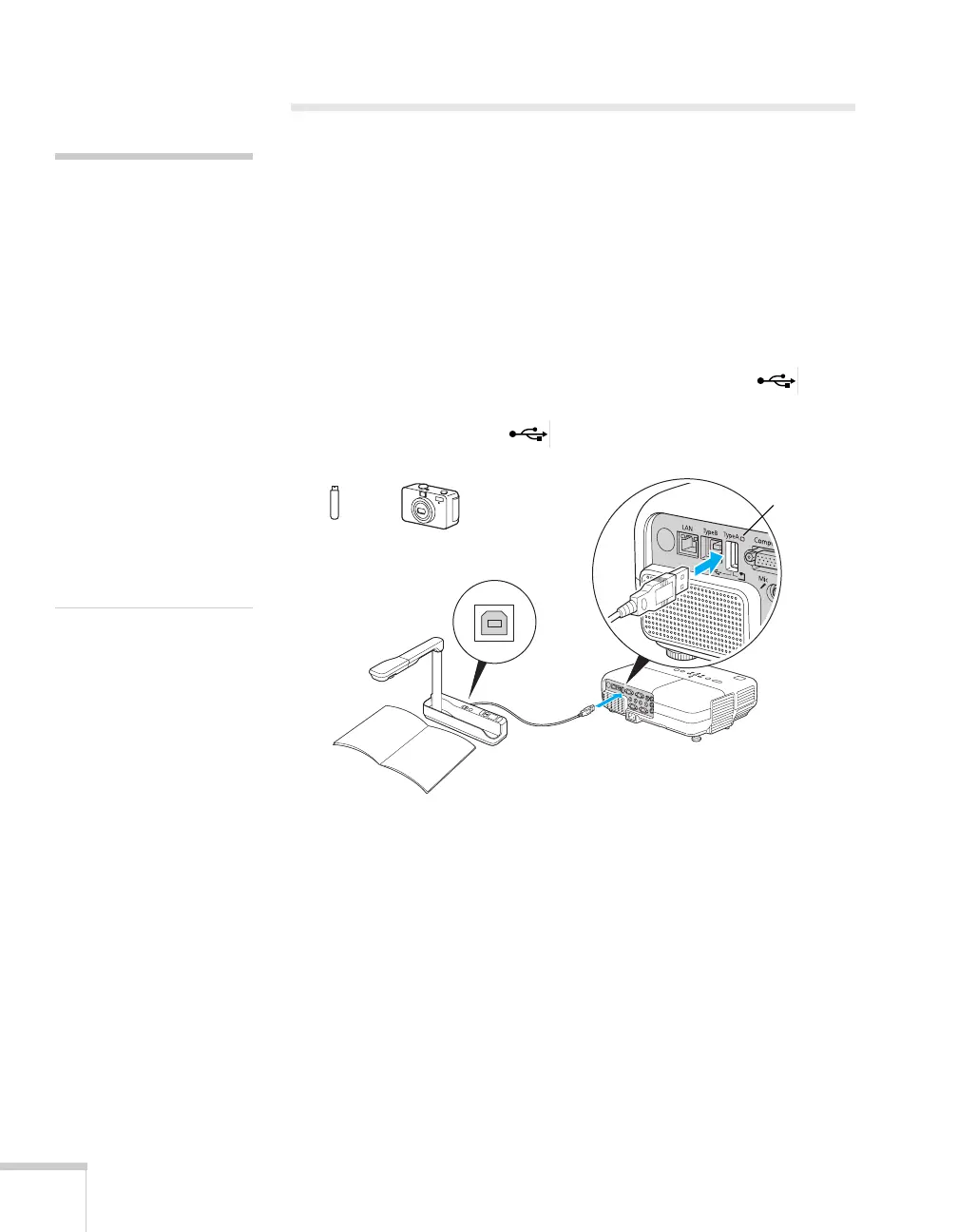You can connect a digital camera, document camera, USB flash