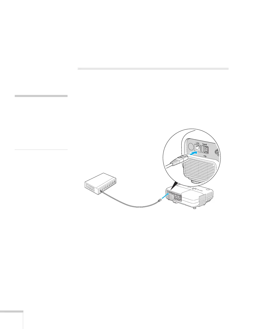 LAN port on the projector as shown.