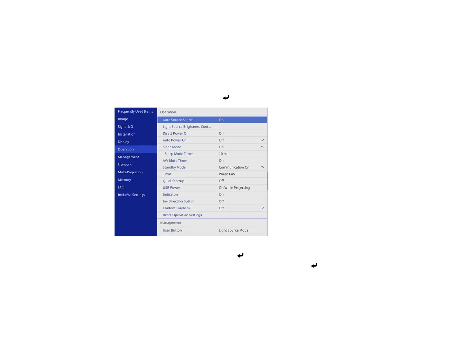 3. Select the Operation menu and press Enter.