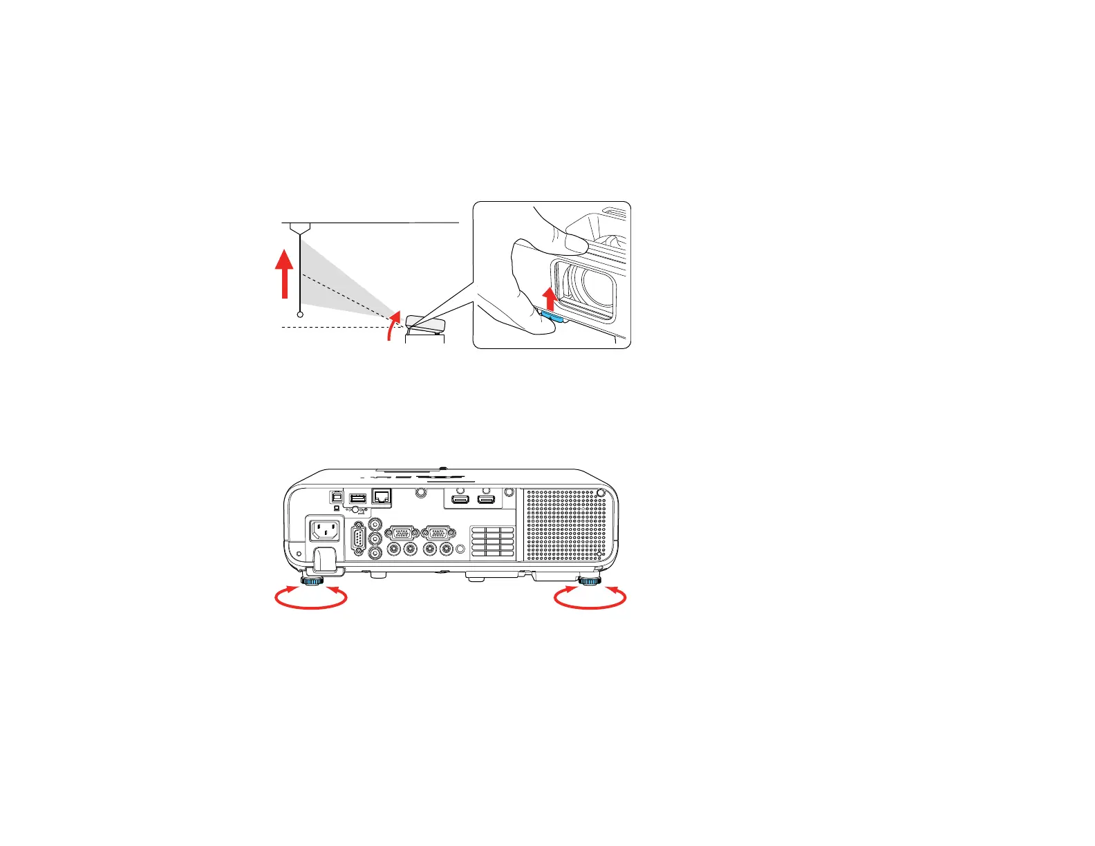 4. If the image is tilted, rotate the rear feet to adjust their height.