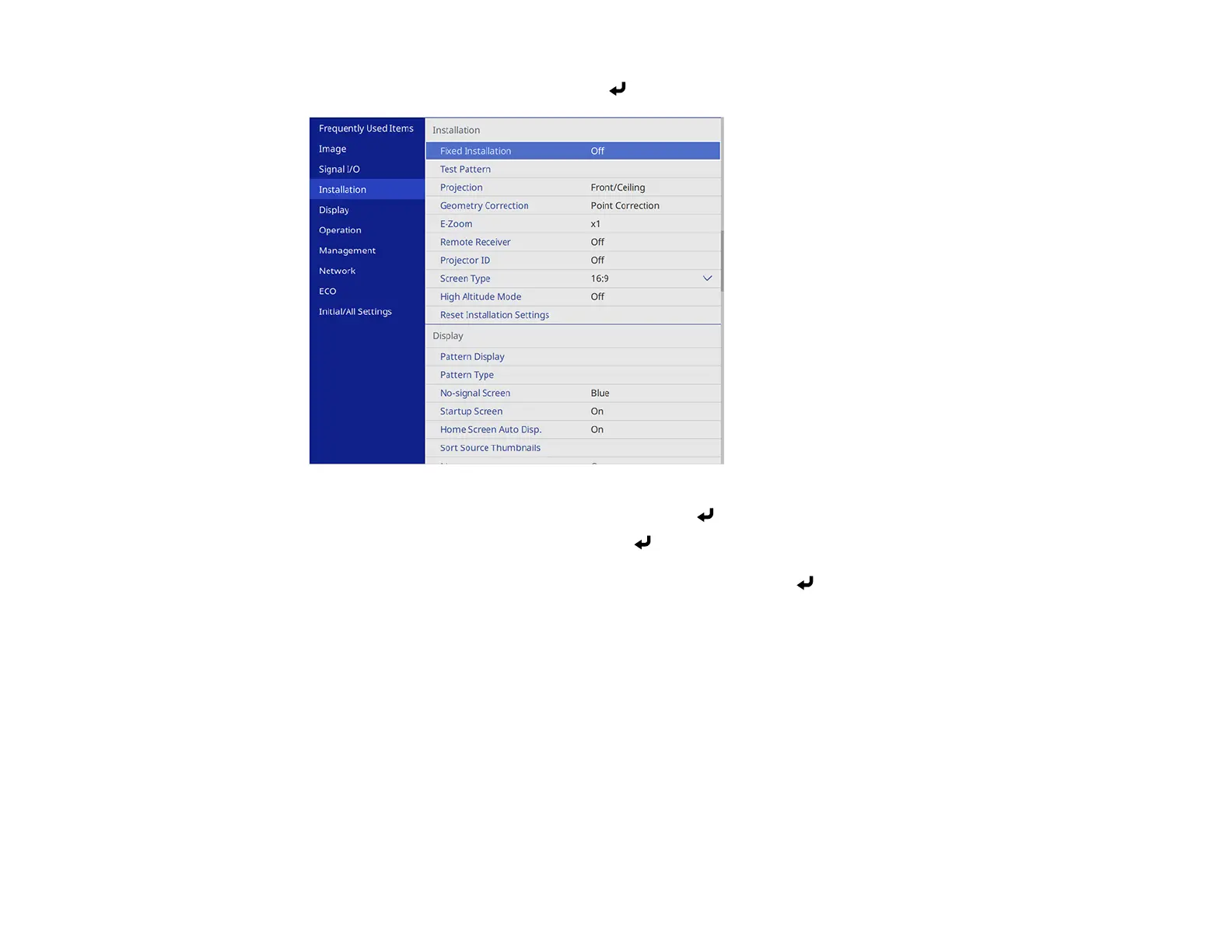 4. Select the Geometry Correction setting and press Enter.