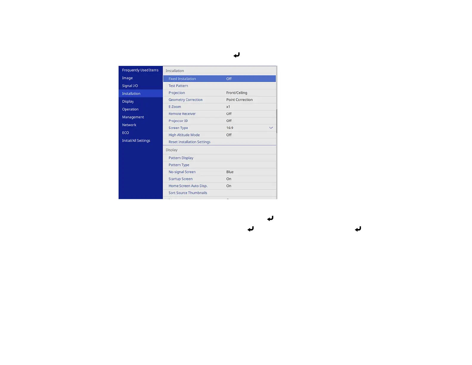 4. Select the Geometry Correction setting and press Enter.