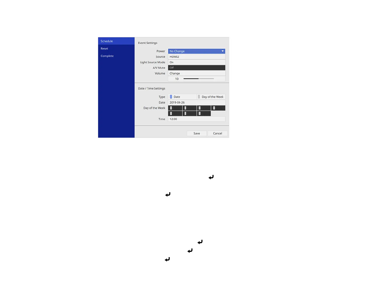 8. In the Date/Time Settings section, set the date and time for the scheduled events to occur.