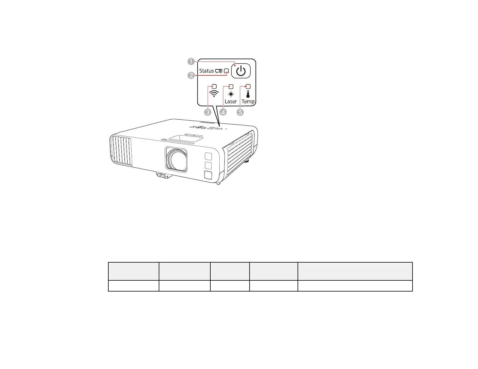 Note: If the Indicators setting in the Operation menu is Off, all lights are off under normal projection