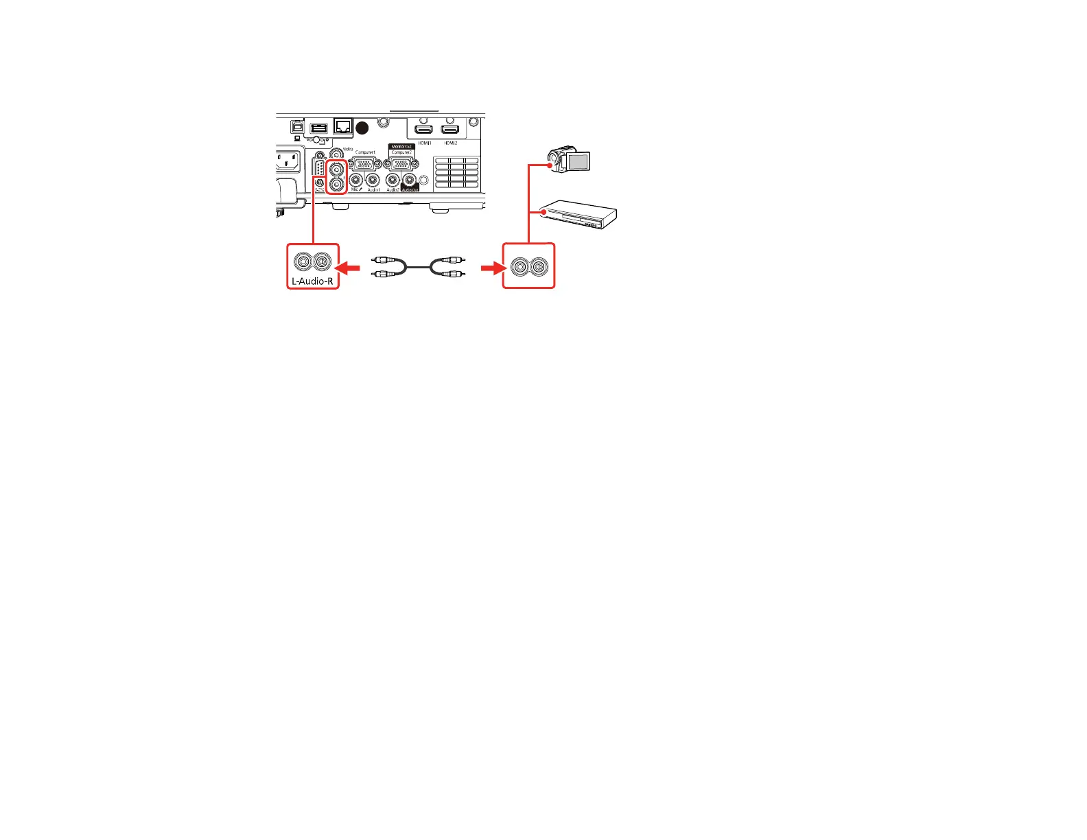 4. Connect the other end to the projector's L and R audio ports.