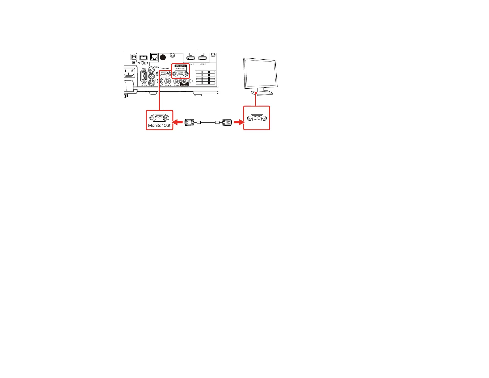 2. Connect the external monitor's cable to your projector's Monitor Out/Computer 2 port.