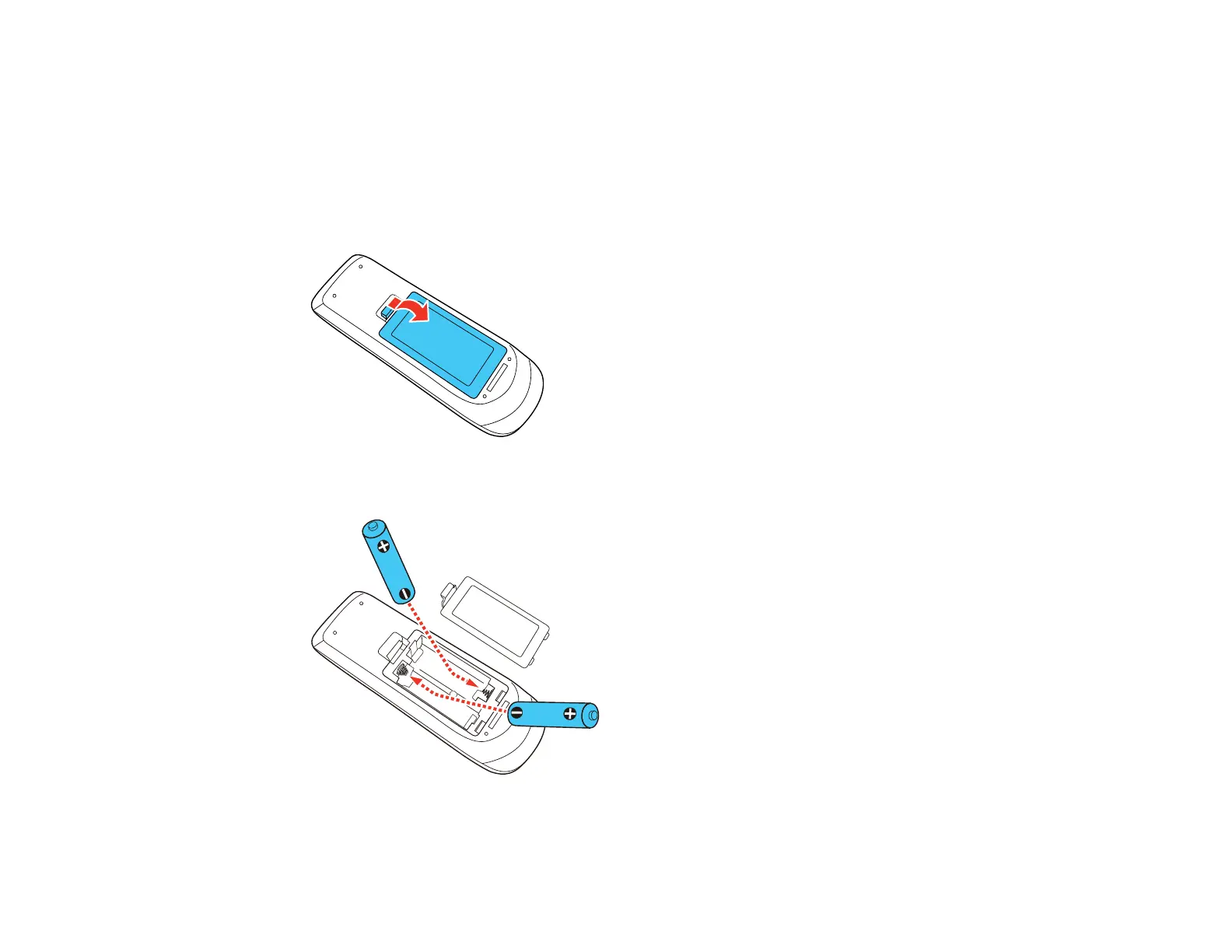 2. Insert the batteries with the + and – ends facing as shown.
