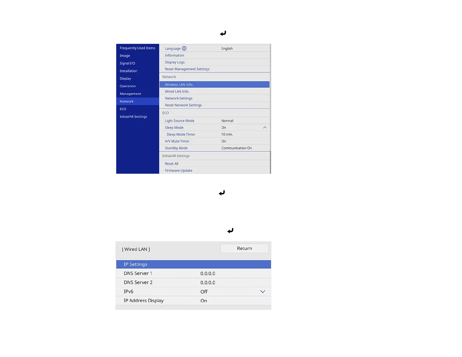 5. Select Projector Name and enter a name up to 16 alphanumeric characters long to identify the