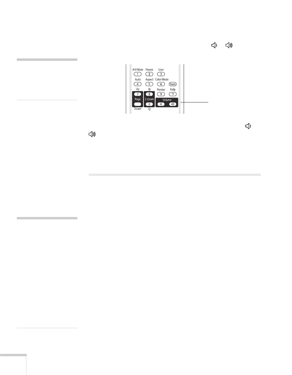 To change the volume on the projector, press the or button on
