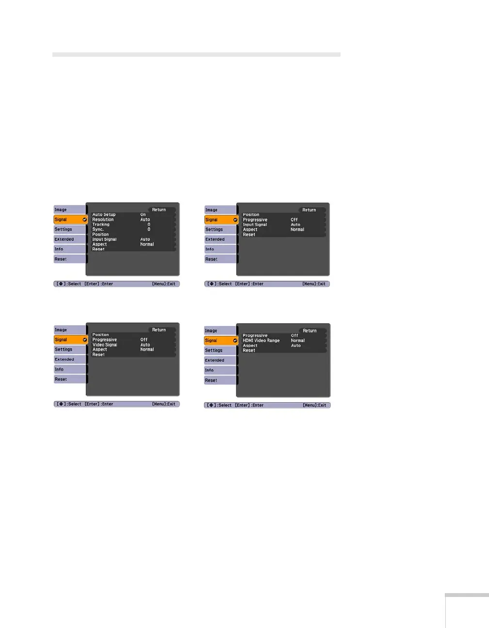 Menu button and select the Signal menu. You see a