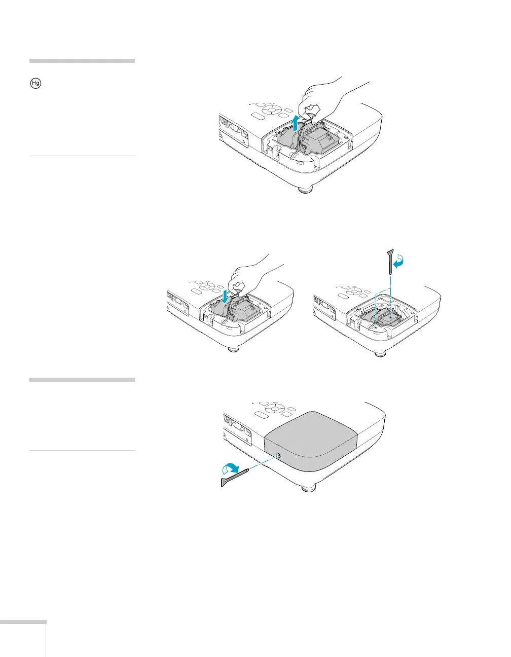 7. Replace the lamp cover, then tighten its screw.