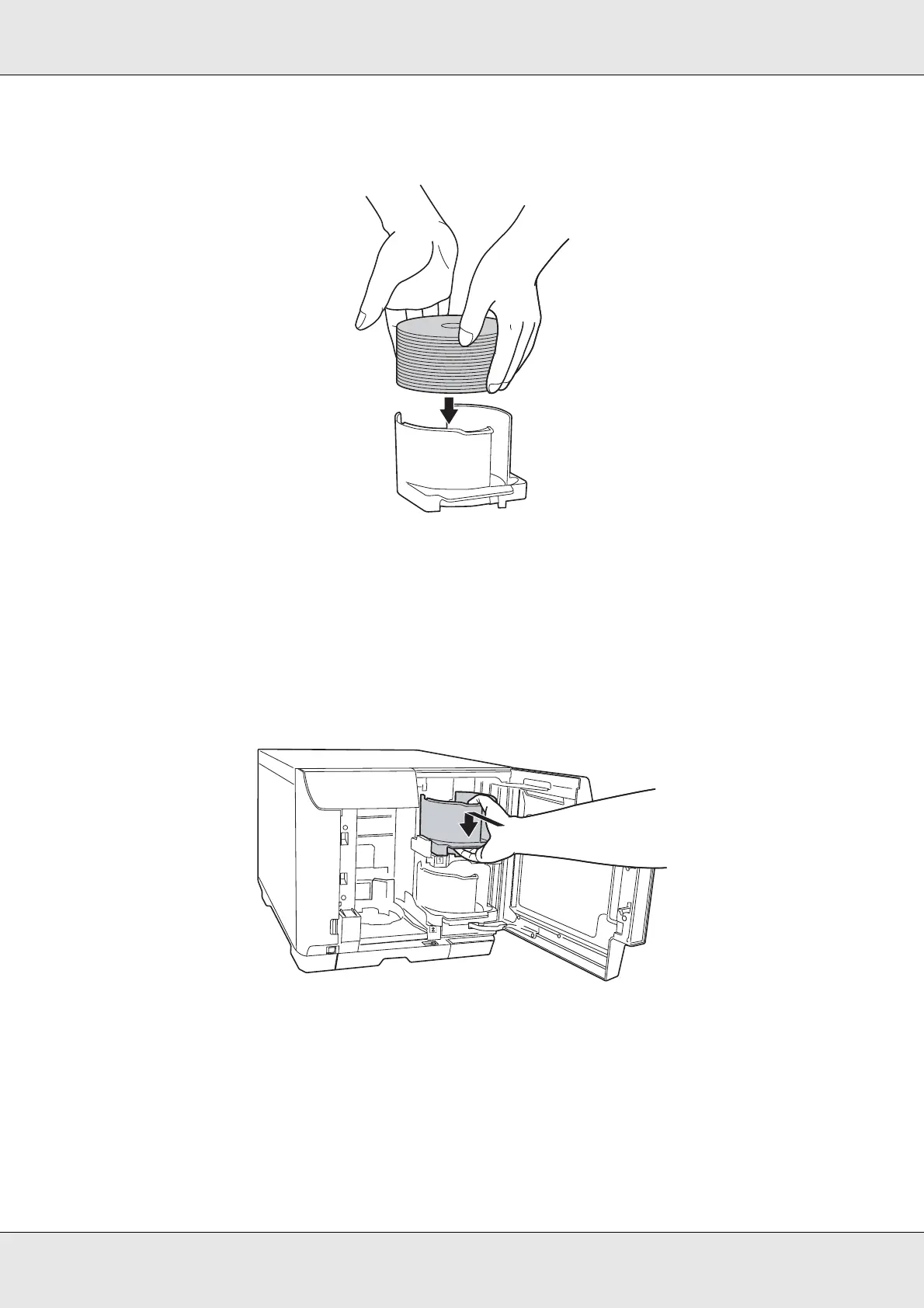 4. Load discs into stacker 1 with the printable side facing up.