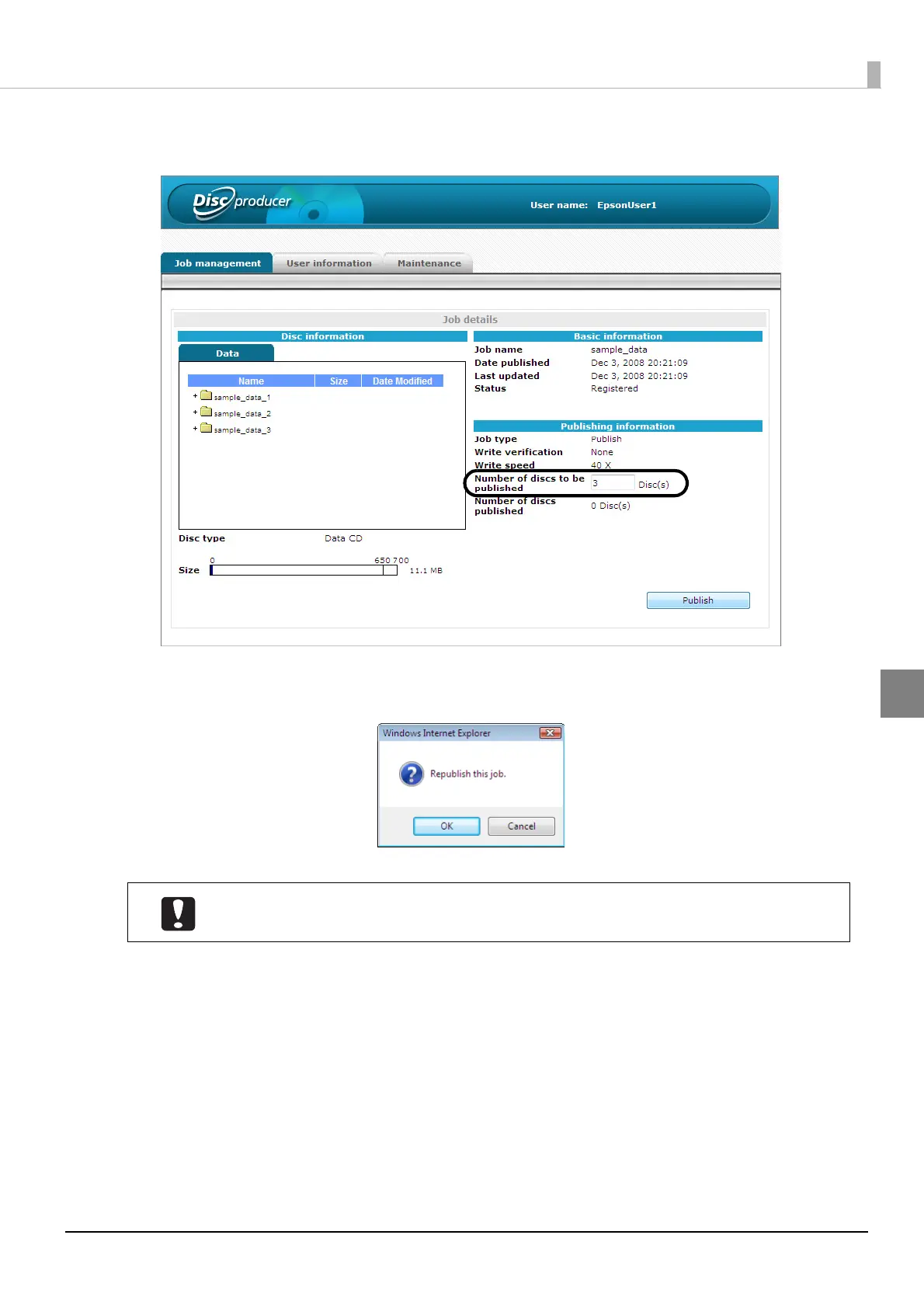 If there are jobs waiting to be processed, the disc publishing process begins in the order
