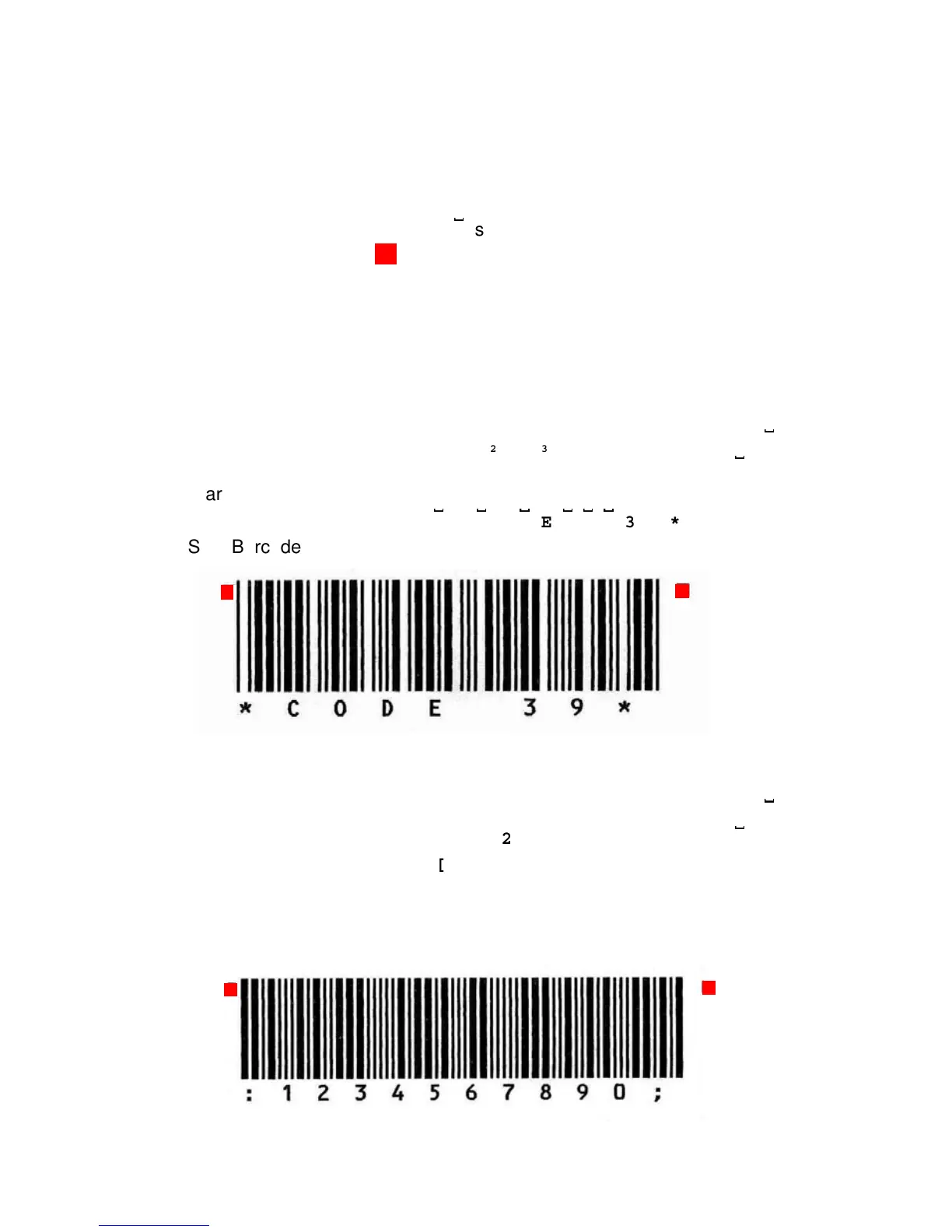 The read square before and after the printed barcode indicates the