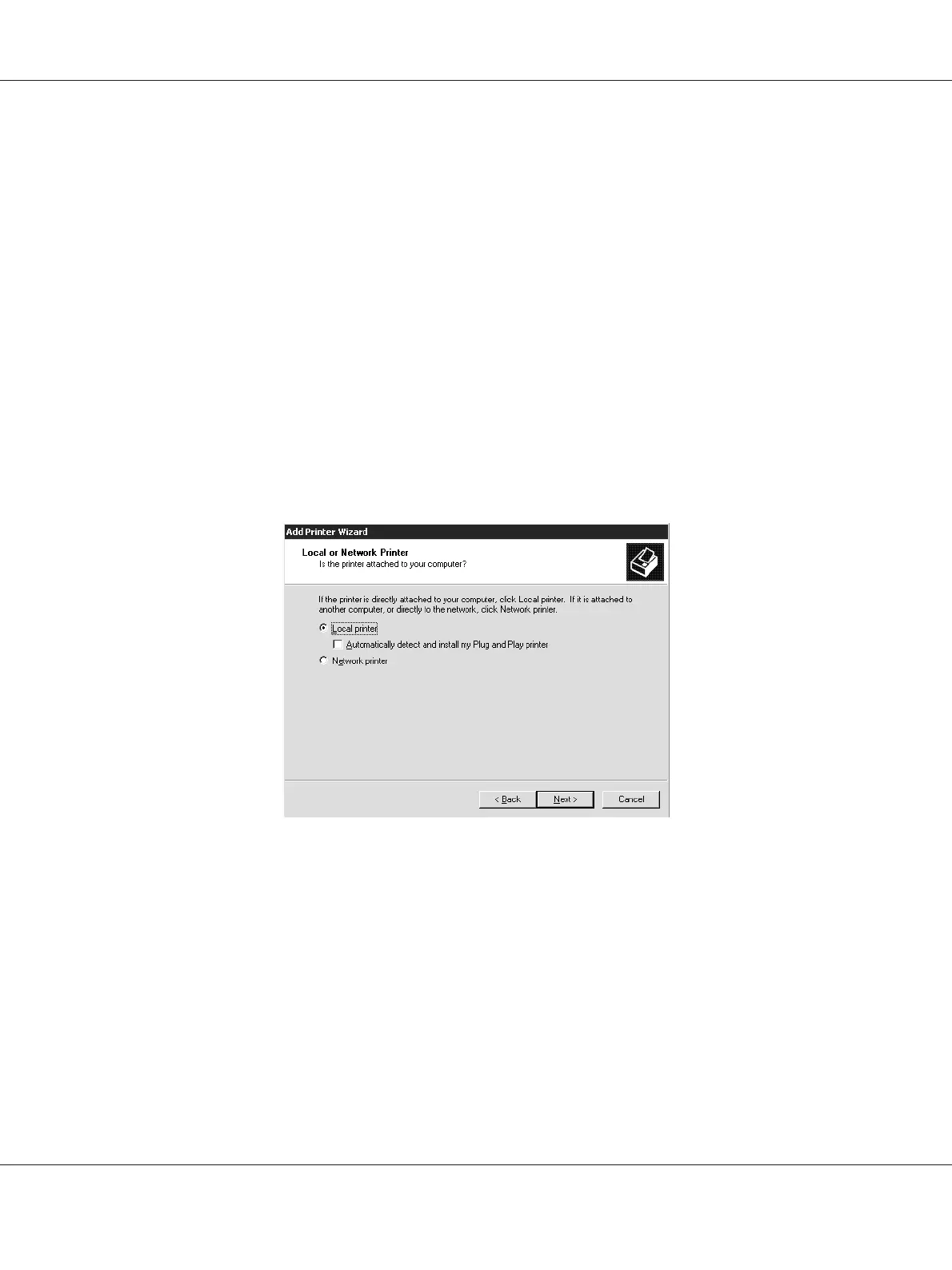If you are using EpsonNet Print, the setup procedure is different. See “About EpsonNet Print” on page
