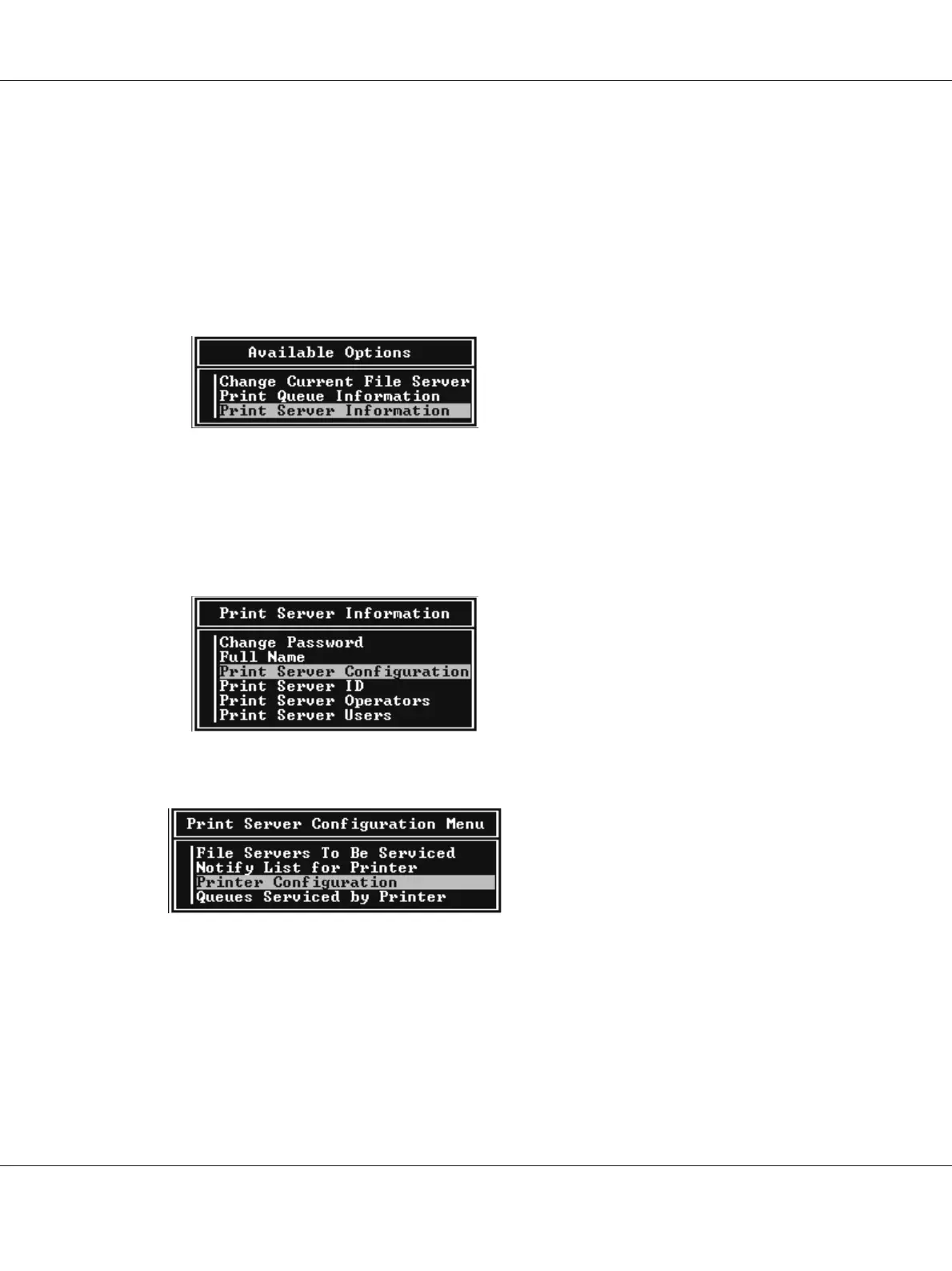 the Print Server Information list, select Print Server Configuration and press Enter.