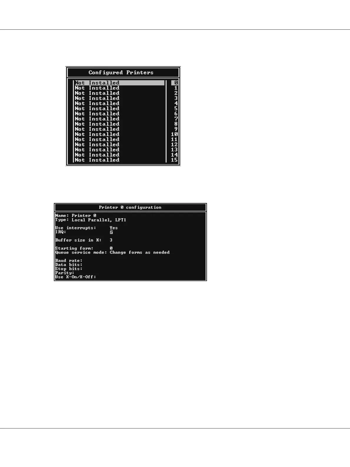 5. From the Configured Printers list, select Not Installed (port number = 0) and press Enter.