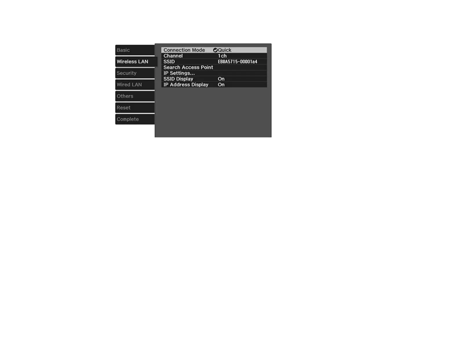 Wireless LAN Menu Settings