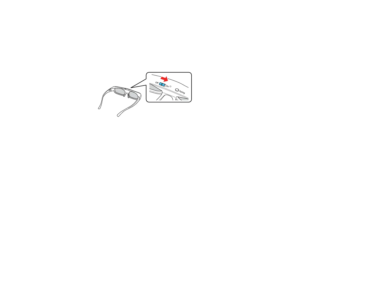 4. Slide the power switch on the 3D glasses to the On position.
