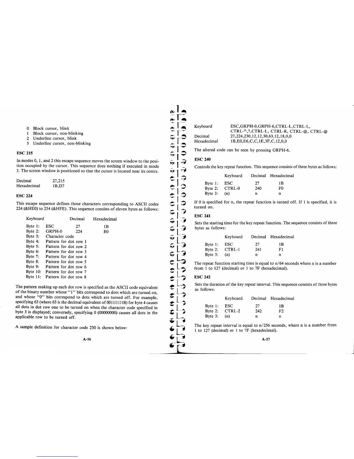 tion occupied by the cursor. This sequence does nothing