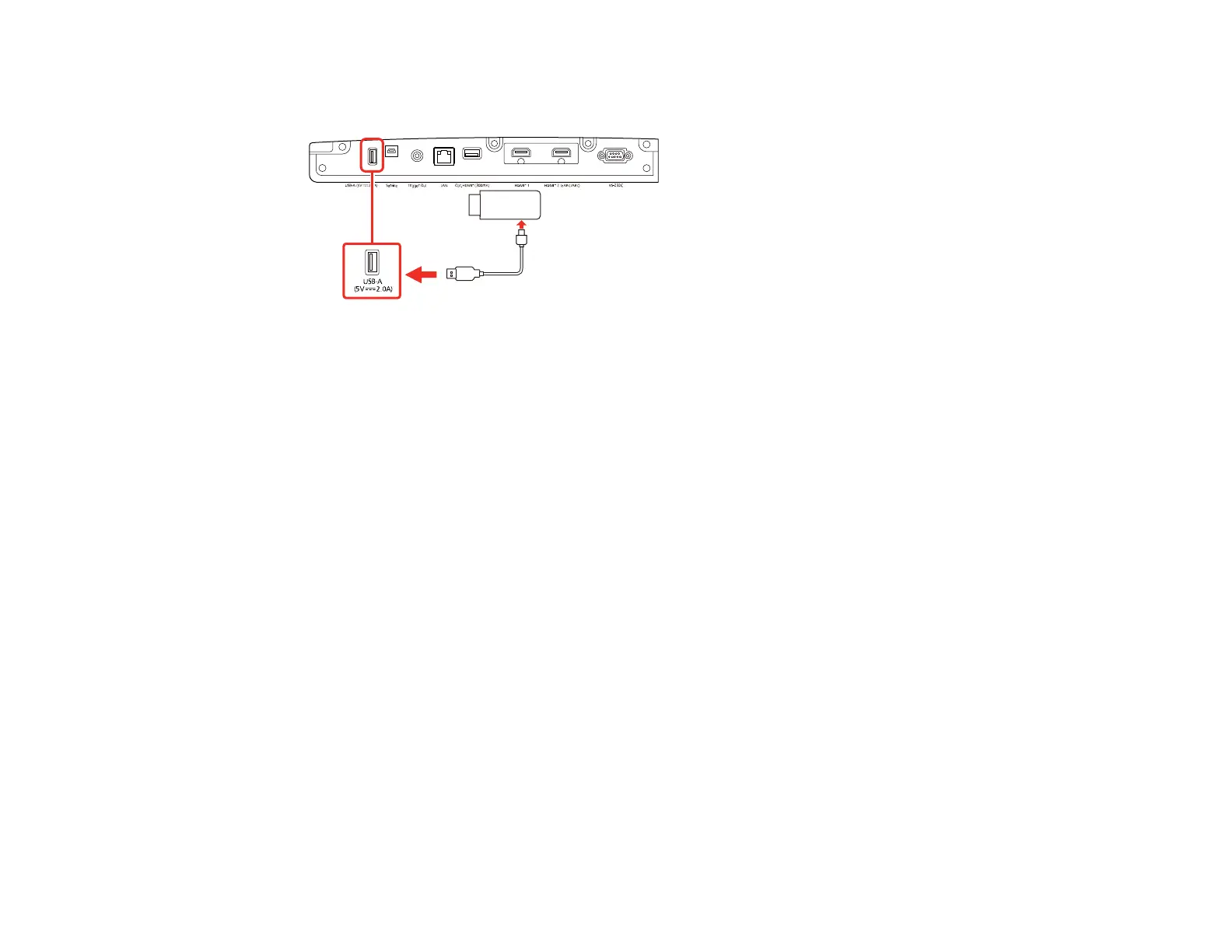 2. If necessary, connect the streaming media player's power supply USB cable to the USB-A port.