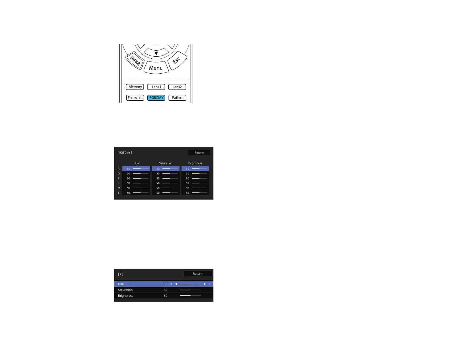 2. Press the RBGCMY button on the remote control.