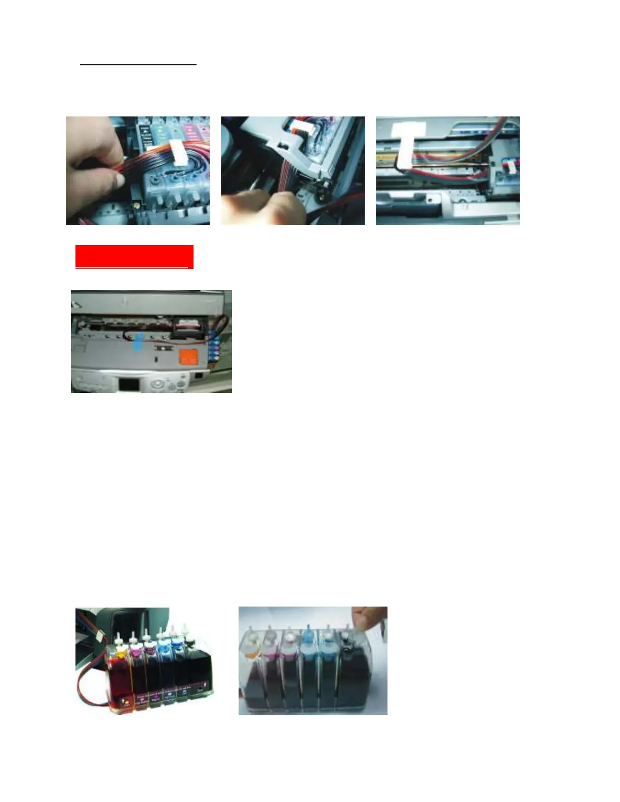Printer and ink tank MUST remain at the same level (not higher and not lower).