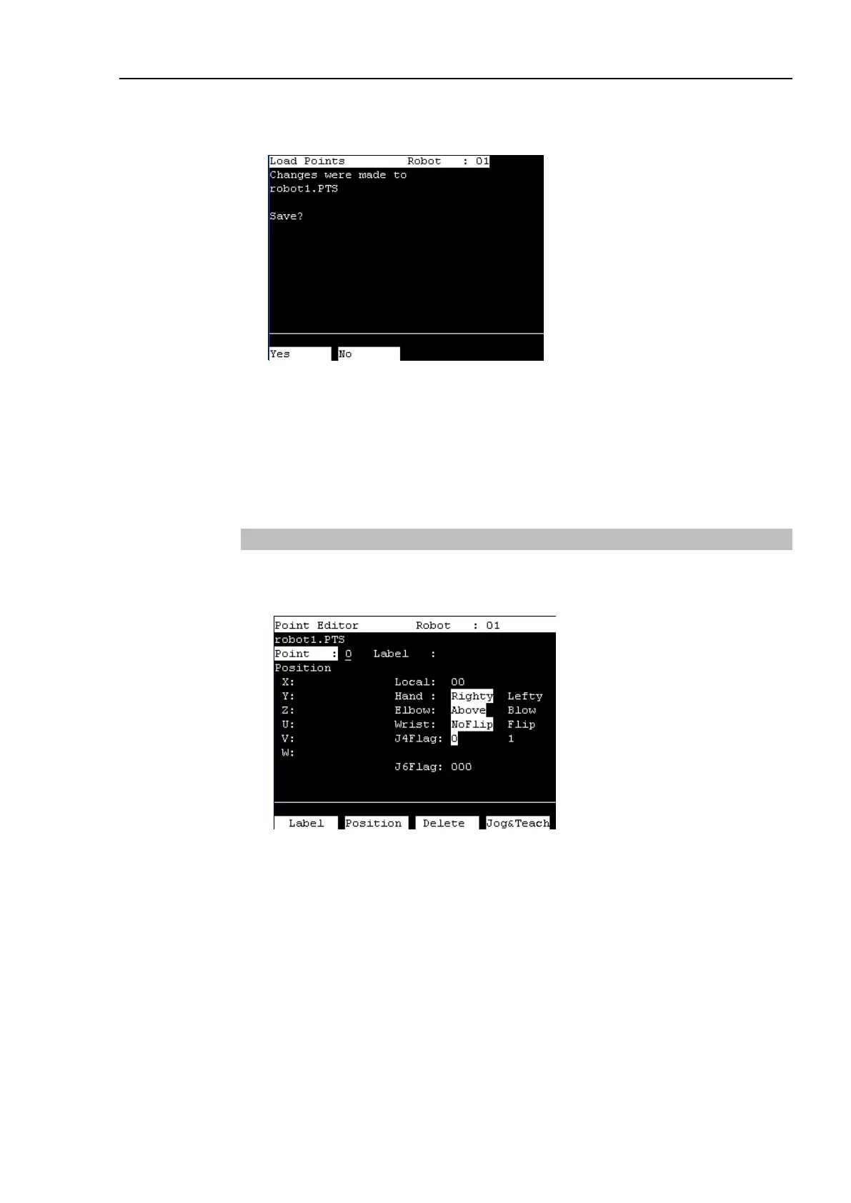 (1) Press the <F1> key in the [Jog & Teach] screen. The following screen appears.