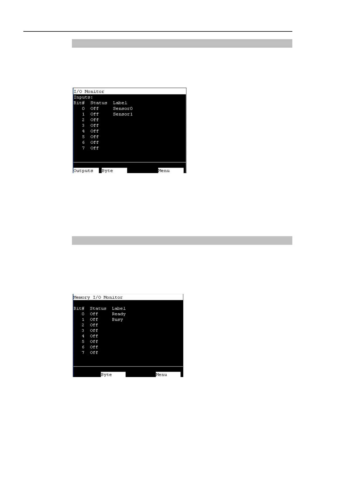This screen displays the bit status of memory I/O.