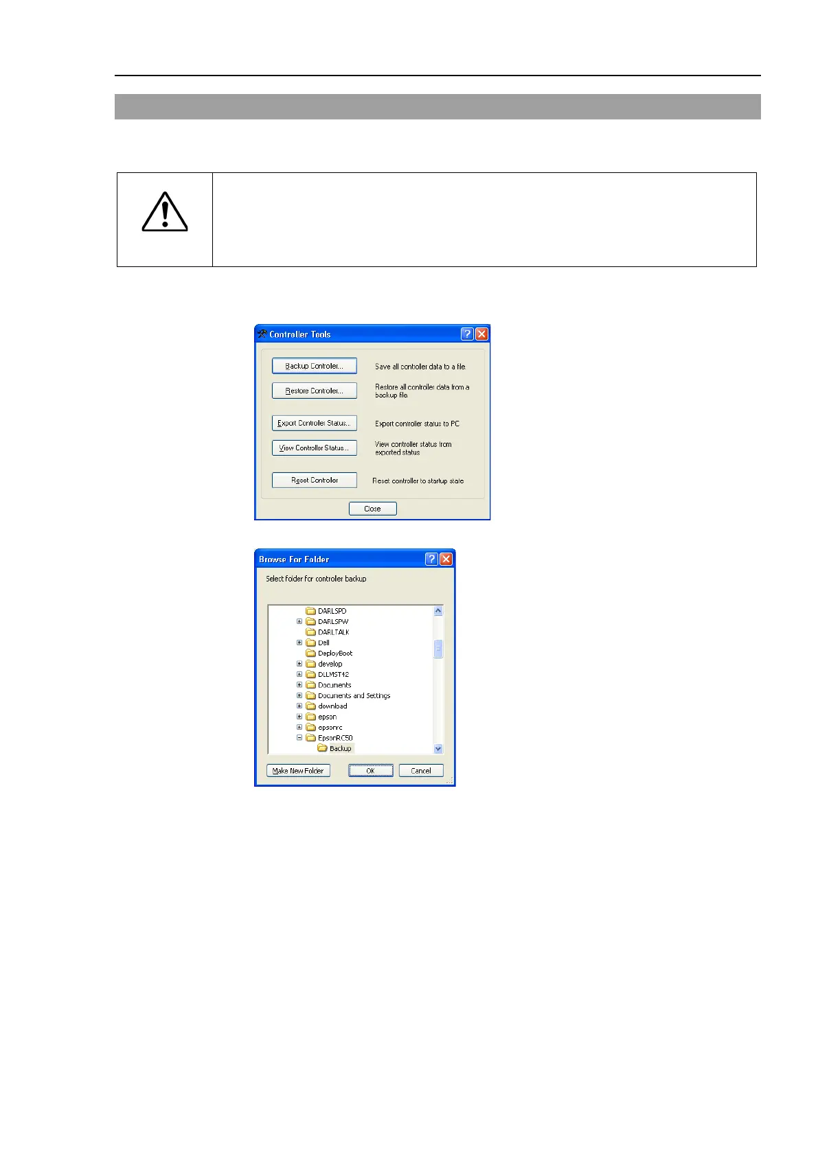 (2) Click the <Restore Controller…> button to display the [Browse For Folder] dialog.