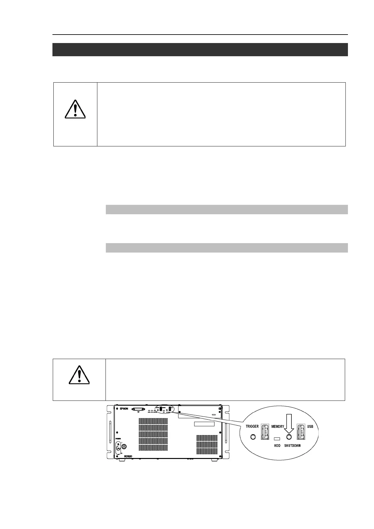 Exit EPSON RC+ 6.0 and shut down Windows. After the Windows shutdown, make