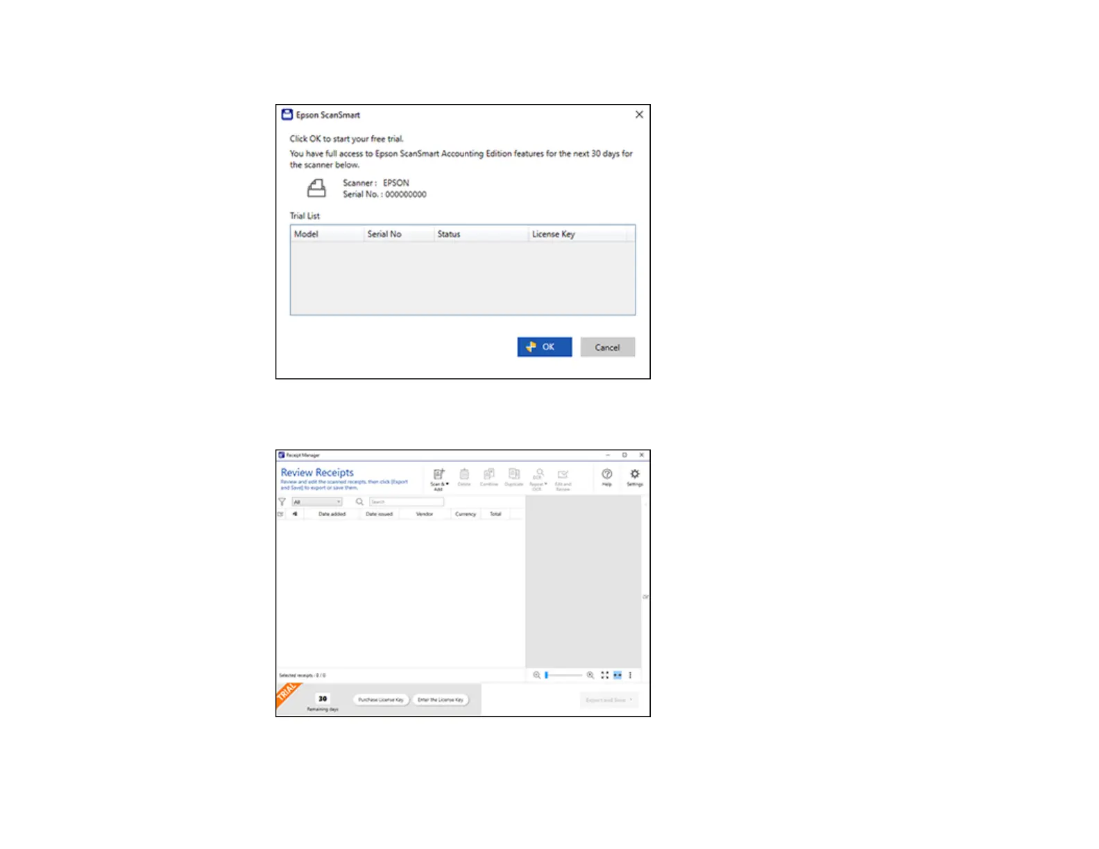 3. Make sure the scanner and serial number listed match your product and click OK.