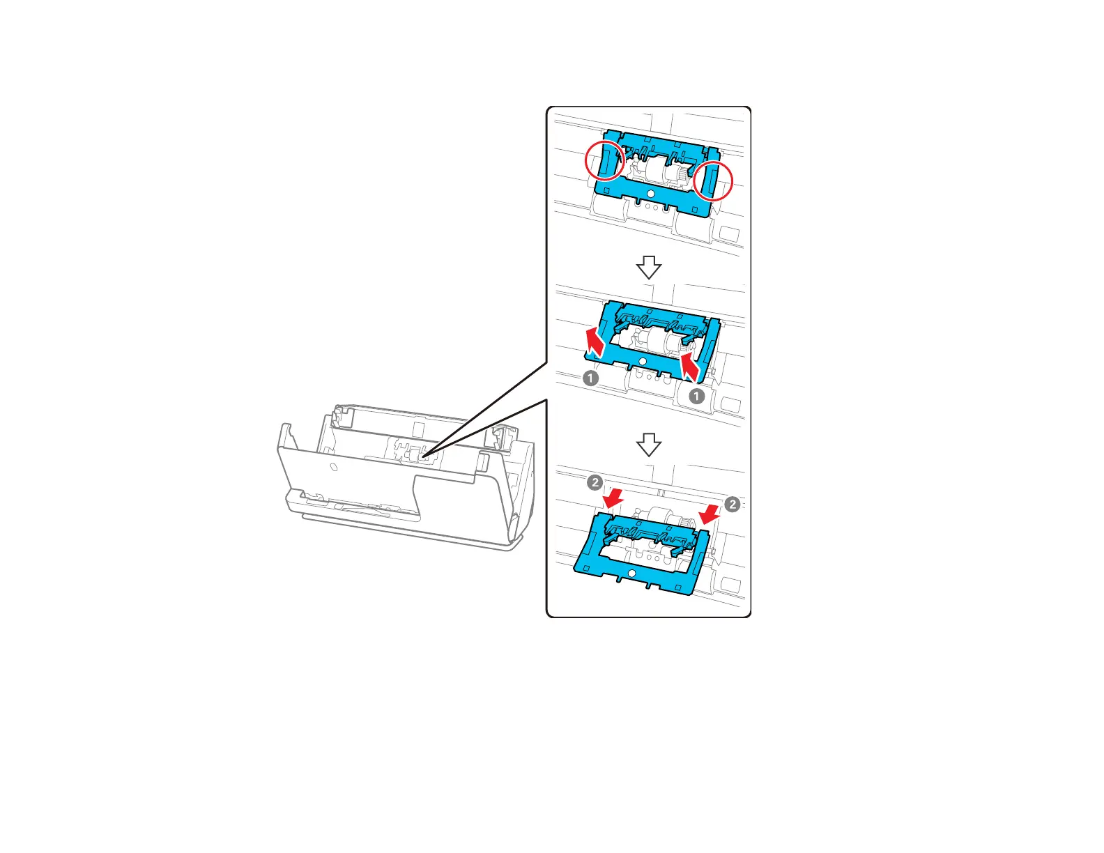 2. Press down on the separation roller cover latch and pull up the cover to remove it.