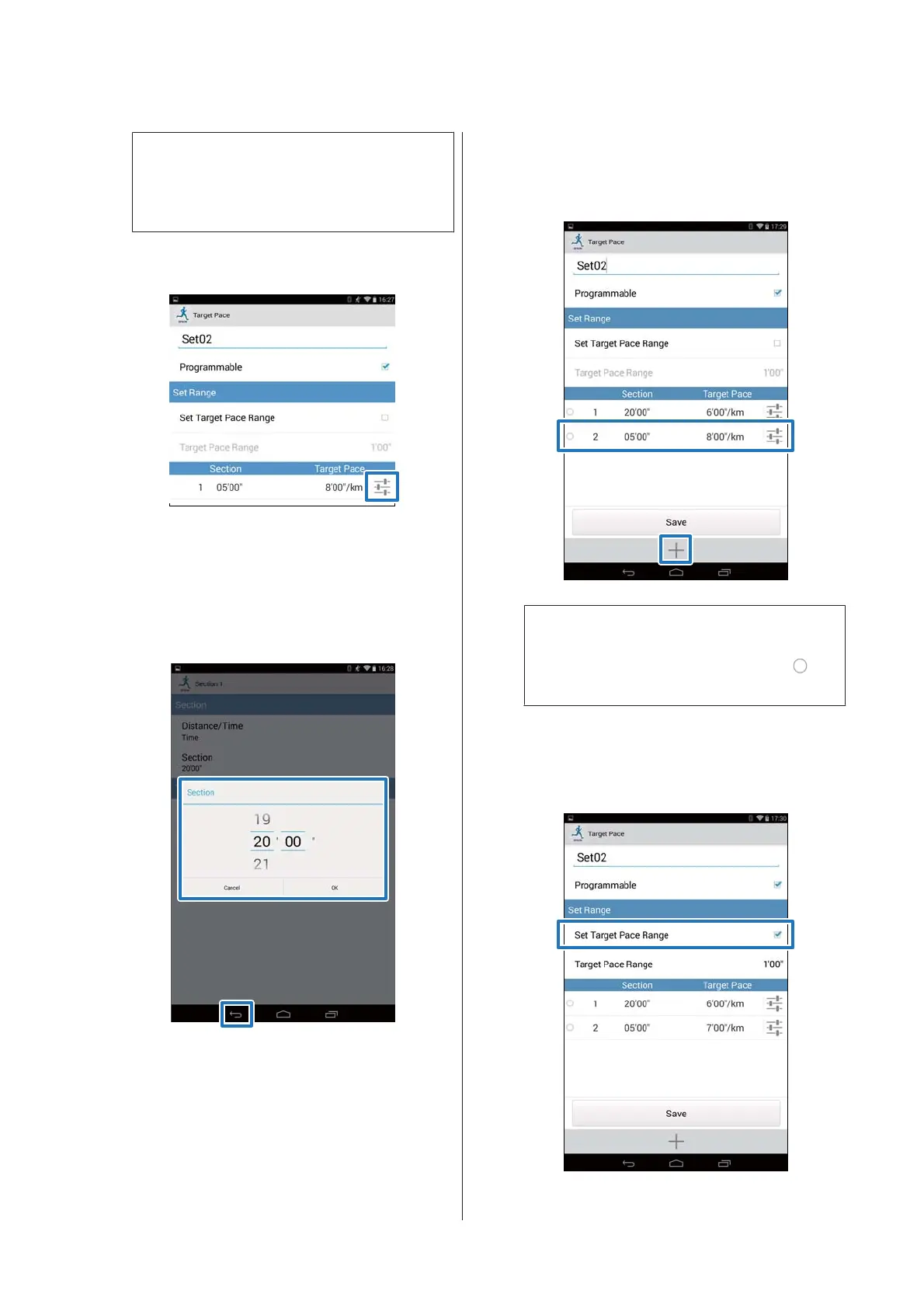 Tap + to add a target pace, and then