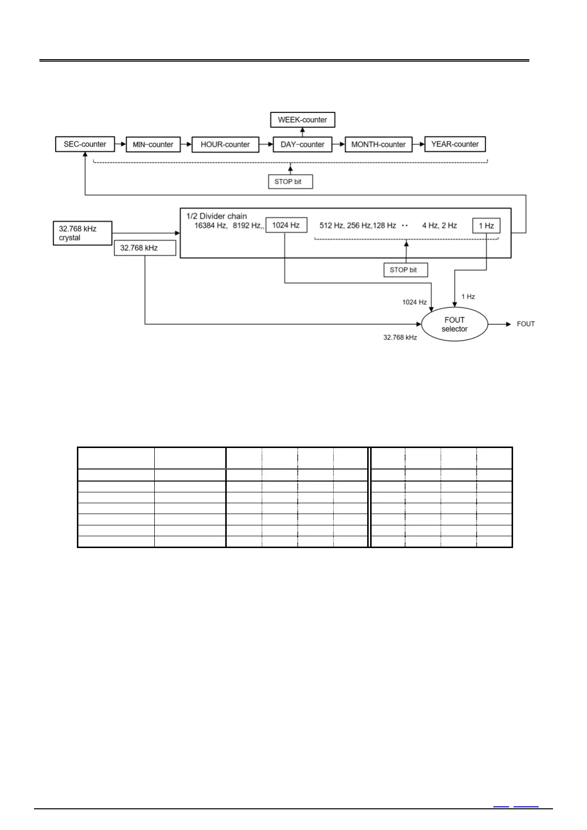 When writing is performed to [SEC] register, Internal-count-down-chain less than one second (512 Hz1Hz) is cleared to 0.
