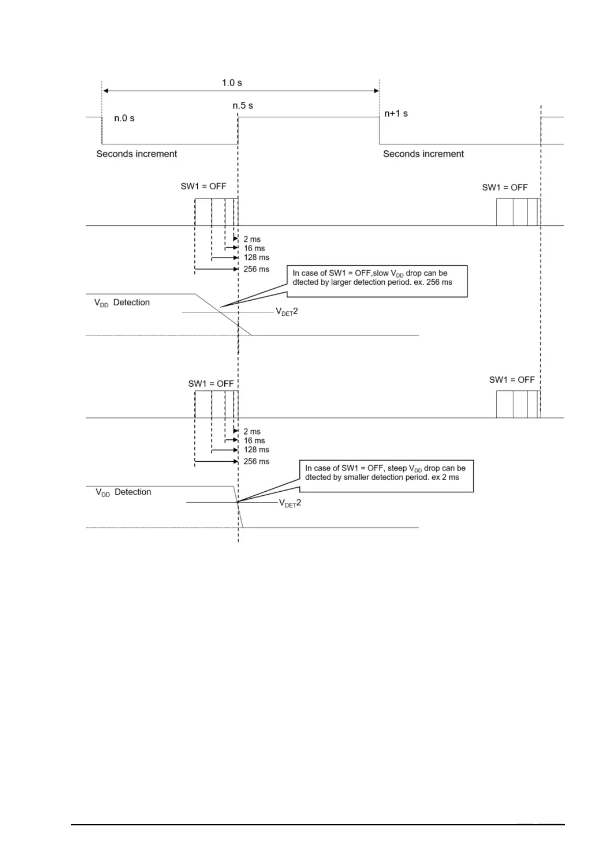 Shorter SW1:OFF times are suitable to detect fast external voltage drops on V
