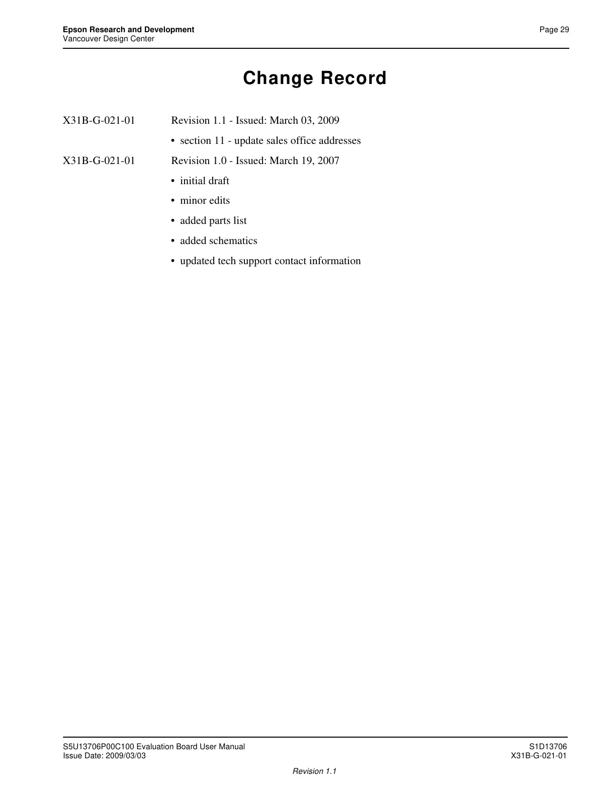 X31B-G-021-01 Revision 1.1 - Issued: March 03, 2009