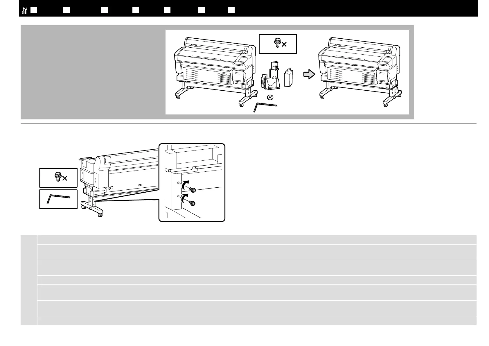 Tournez quelques fois les vis indiquées sur l’illustration an de les maintenir en place temporairement. Serrer trop fort les vis pourrait empêcher certaines pièces de s’emboîter correctement dans les