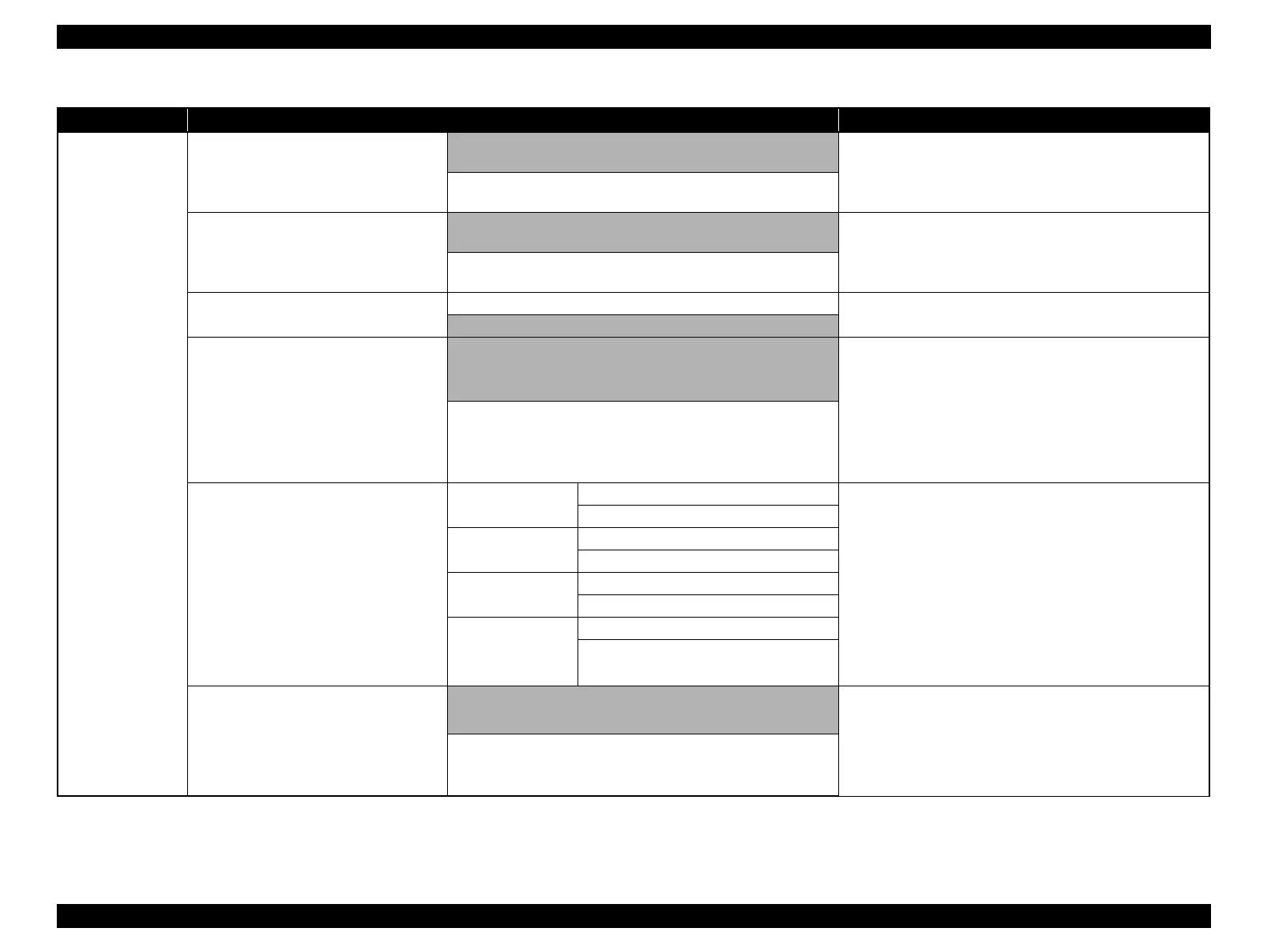 Menu Menu Item/Setting Values (shaded one is the default) Explanation