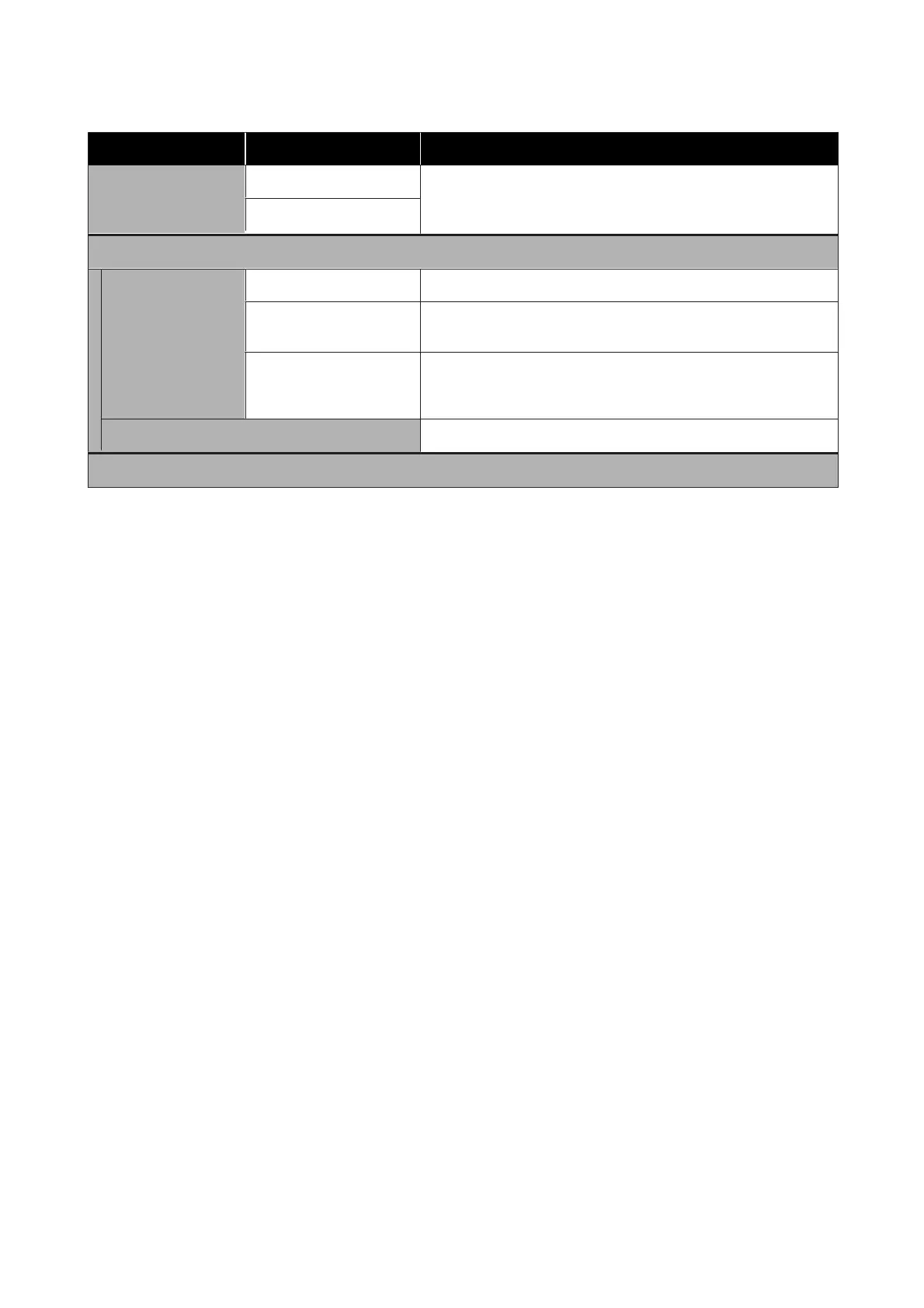 Settings item Settings value Explanation