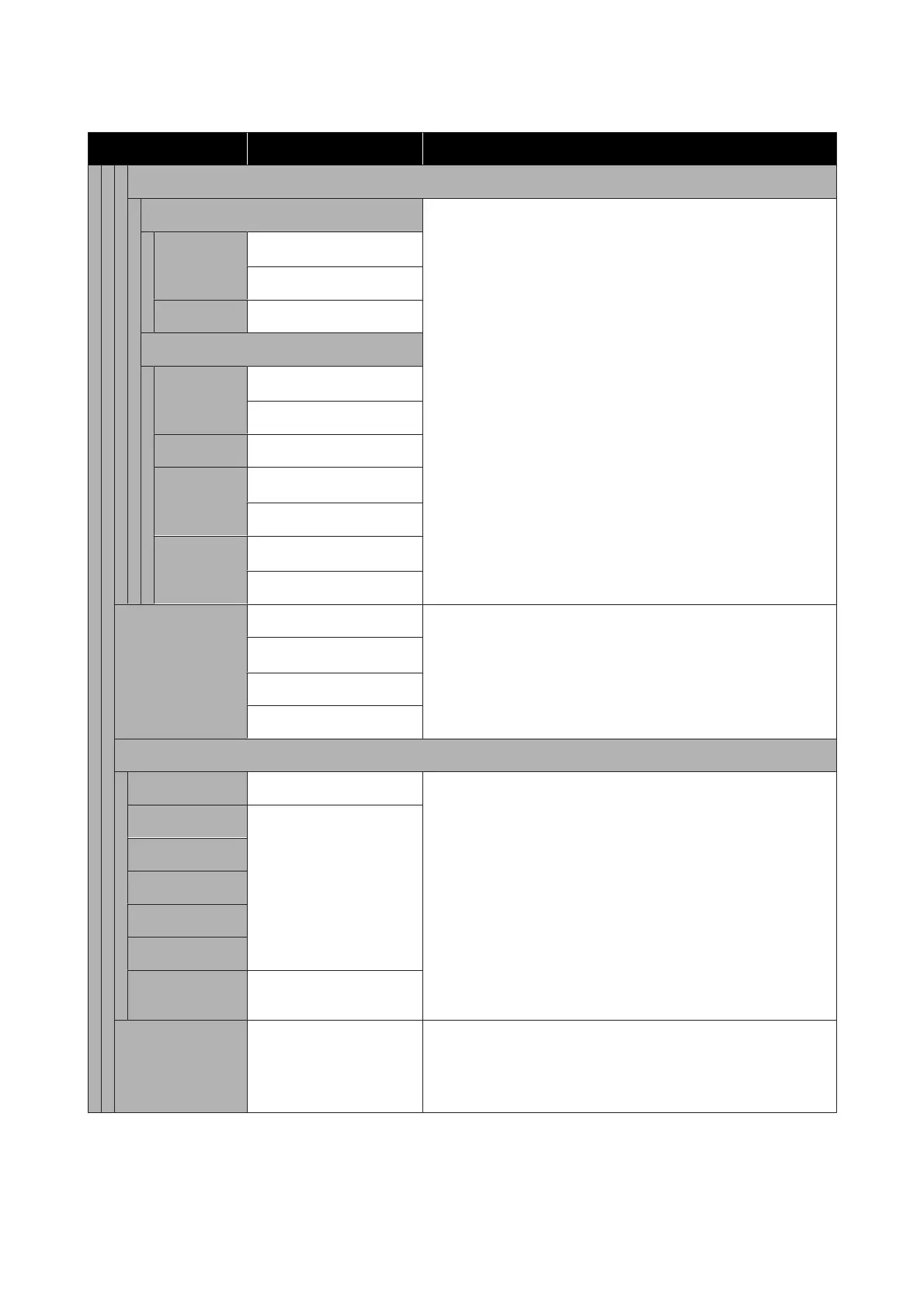 Settings item Settings value Explanation