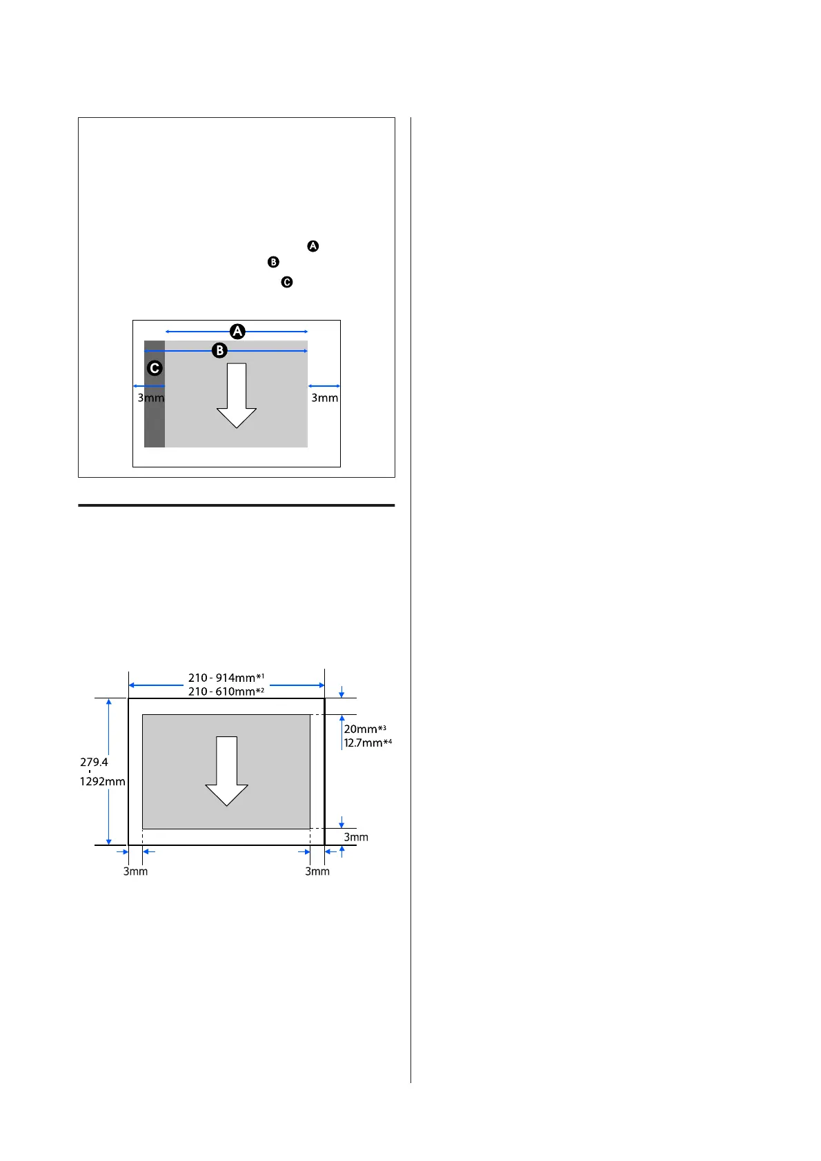 printable area. The arrow in the illustration indicates the