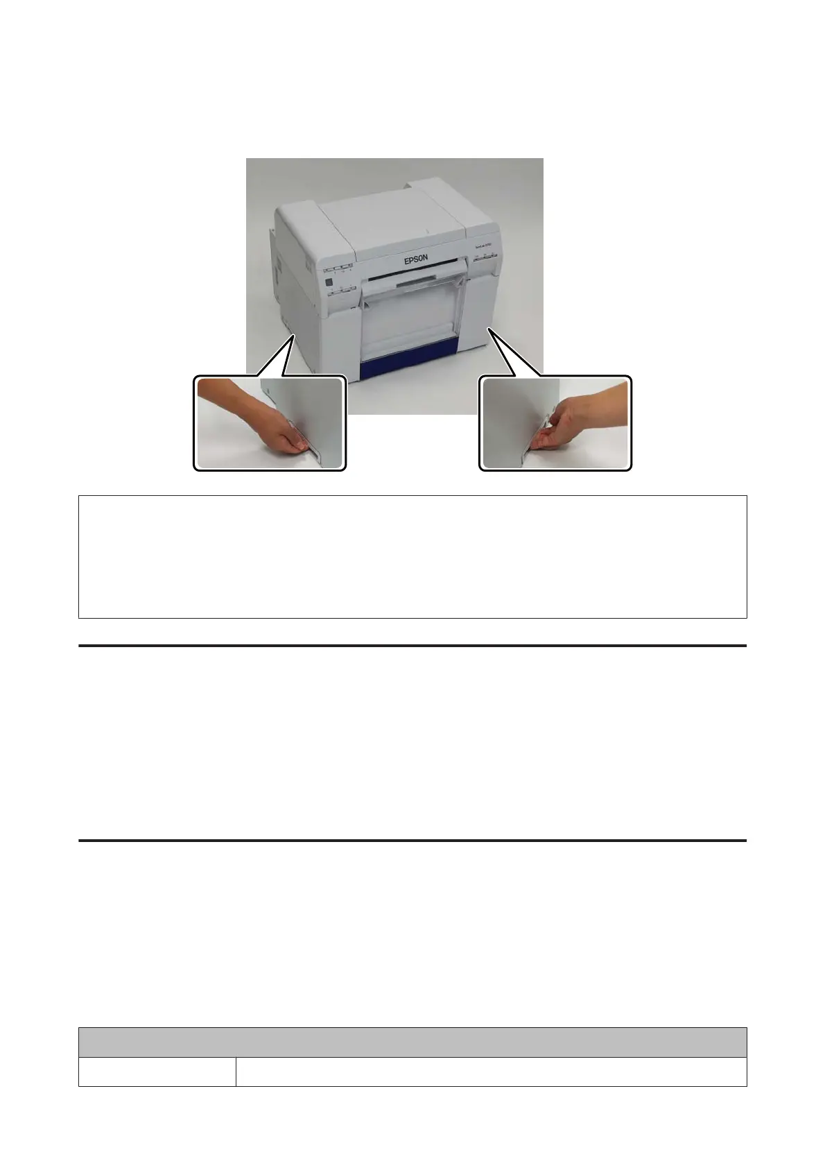 ❏ Move the printer with ink cartridges installed. Do not remove the ink cartridges; otherwise, the nozzles may be
