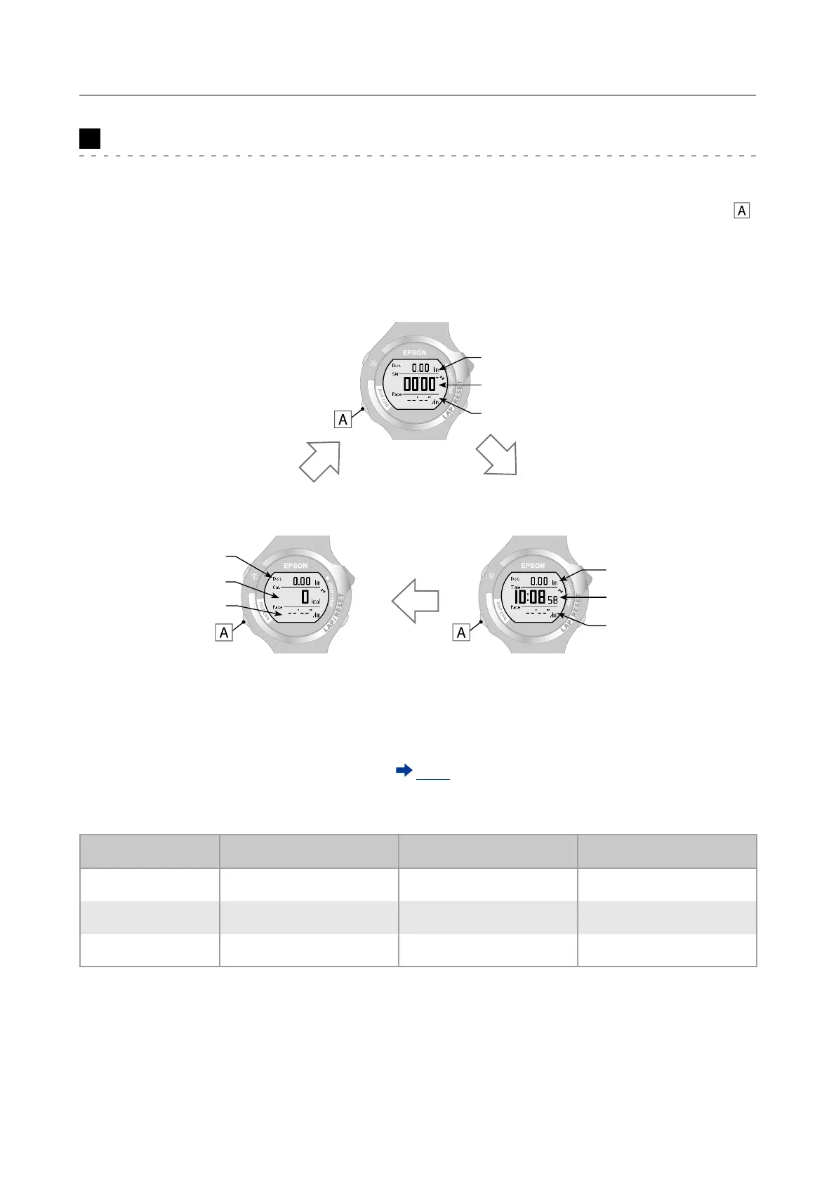 During chronograph measurement, three items are displayed on one screen.