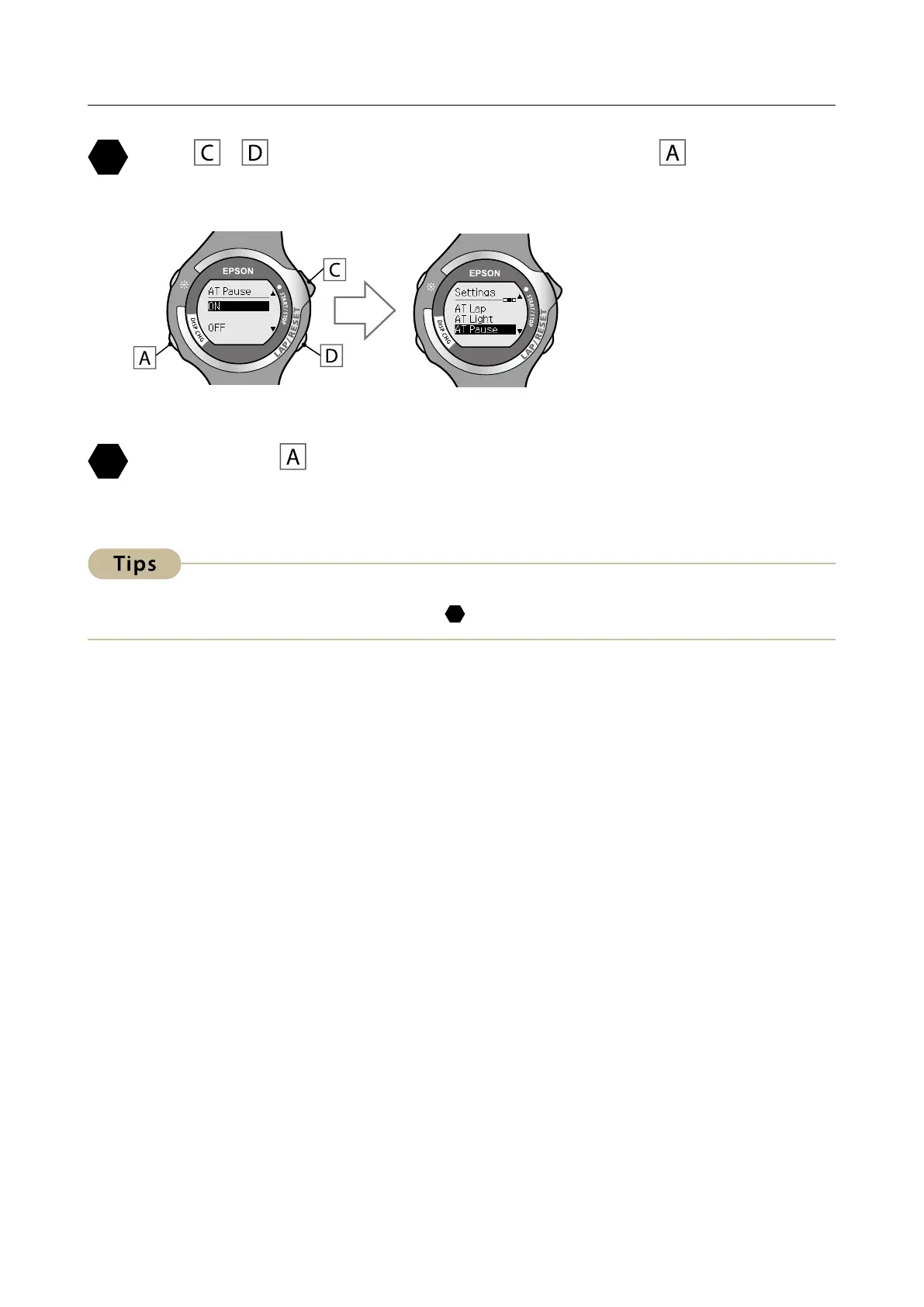Hold down for at least two seconds to return to the