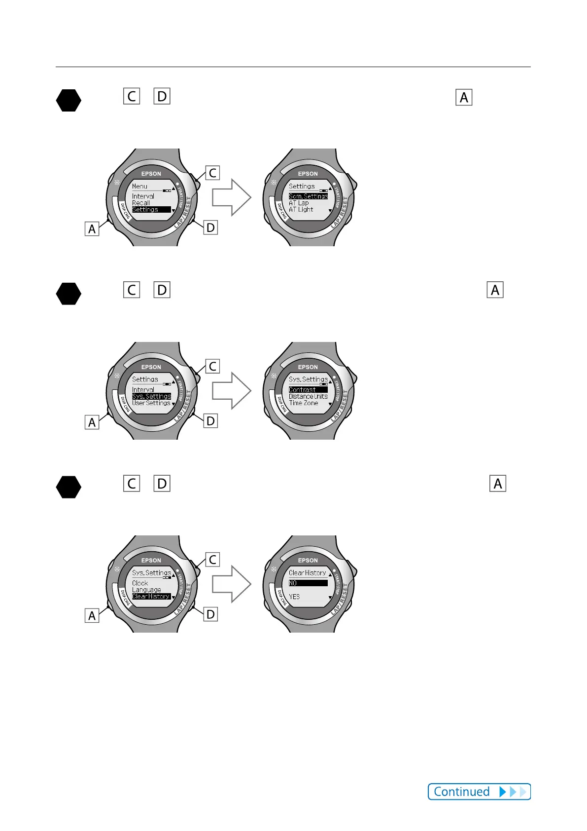 Use / to highlight [Clear History], and then press .