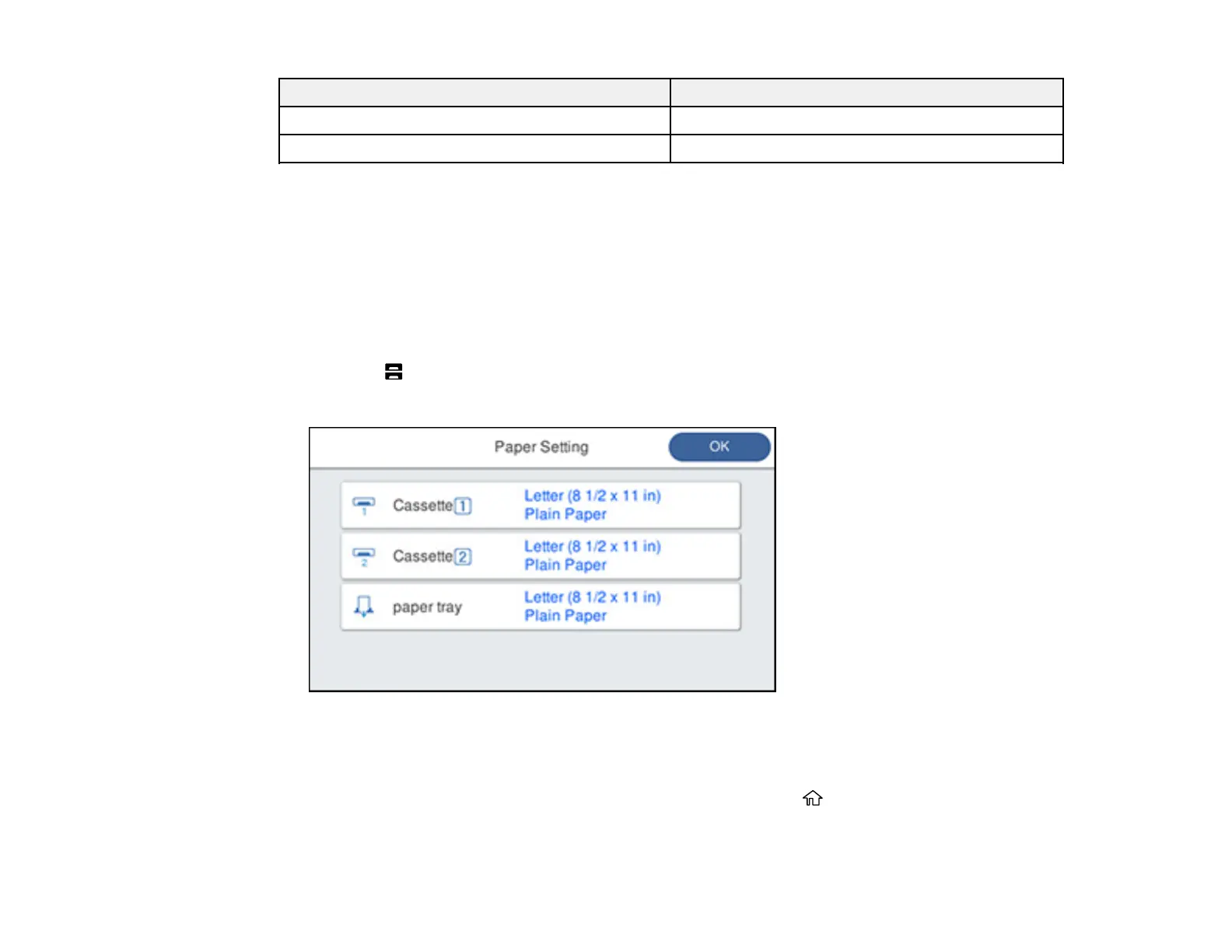 4. Select the back arrow to select another paper source or press the home button to return to the