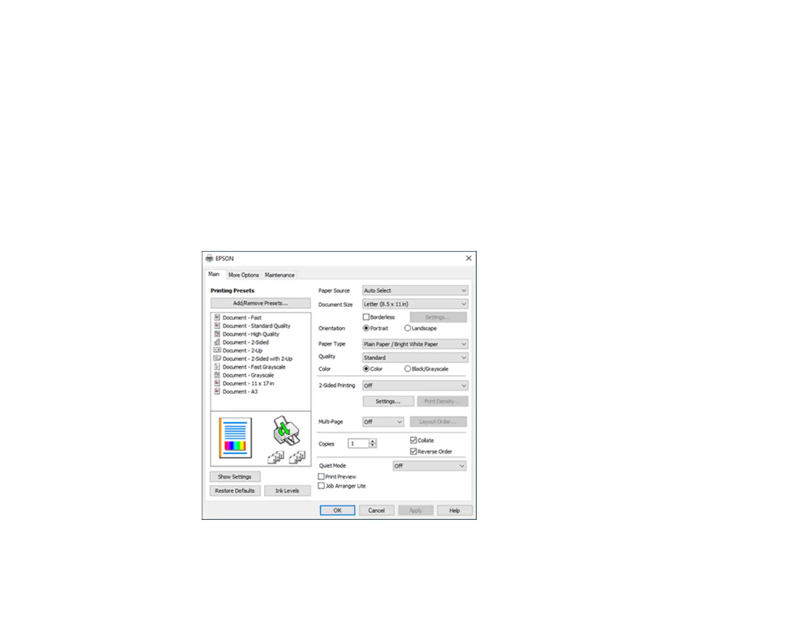 Note: You may also need to select Properties or Preferences to view your print settings.
