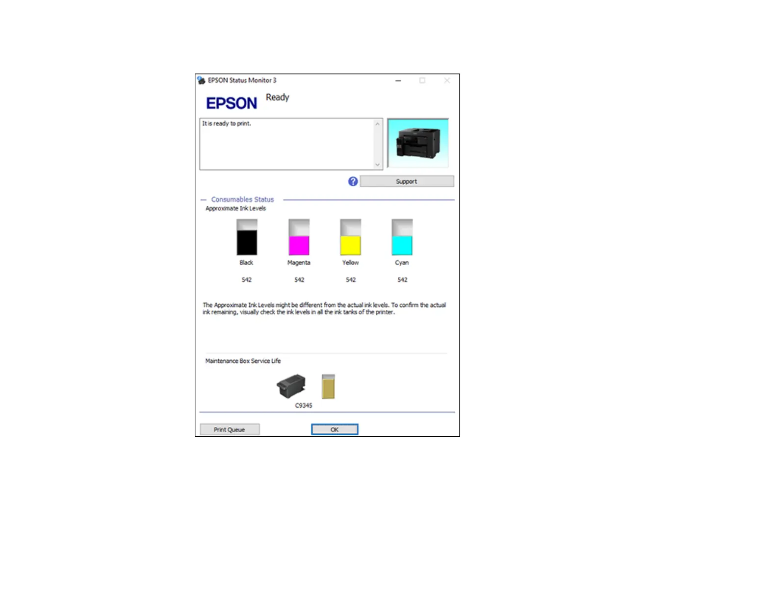 Note: The ink levels displayed are an estimate and may differ from the actual ink remaining in the ink