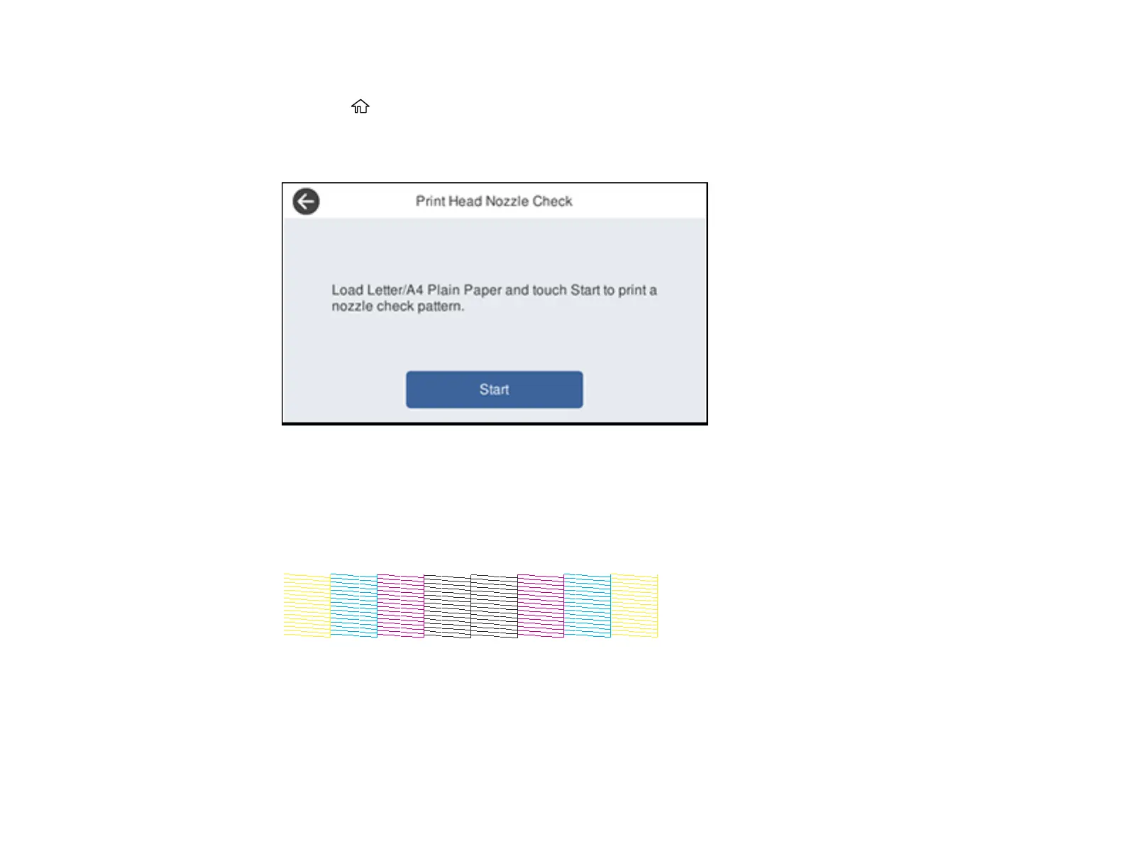 4. Select Settings > Maintenance > Print Head Nozzle Check.